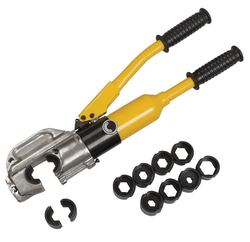 Гидравлический ручной пресс представляет собой мощное устройство, которое увеличивает усилие обжима наконечников за счет использования гидропривода. Прямой ход привода уменьшает размеры инструмента.