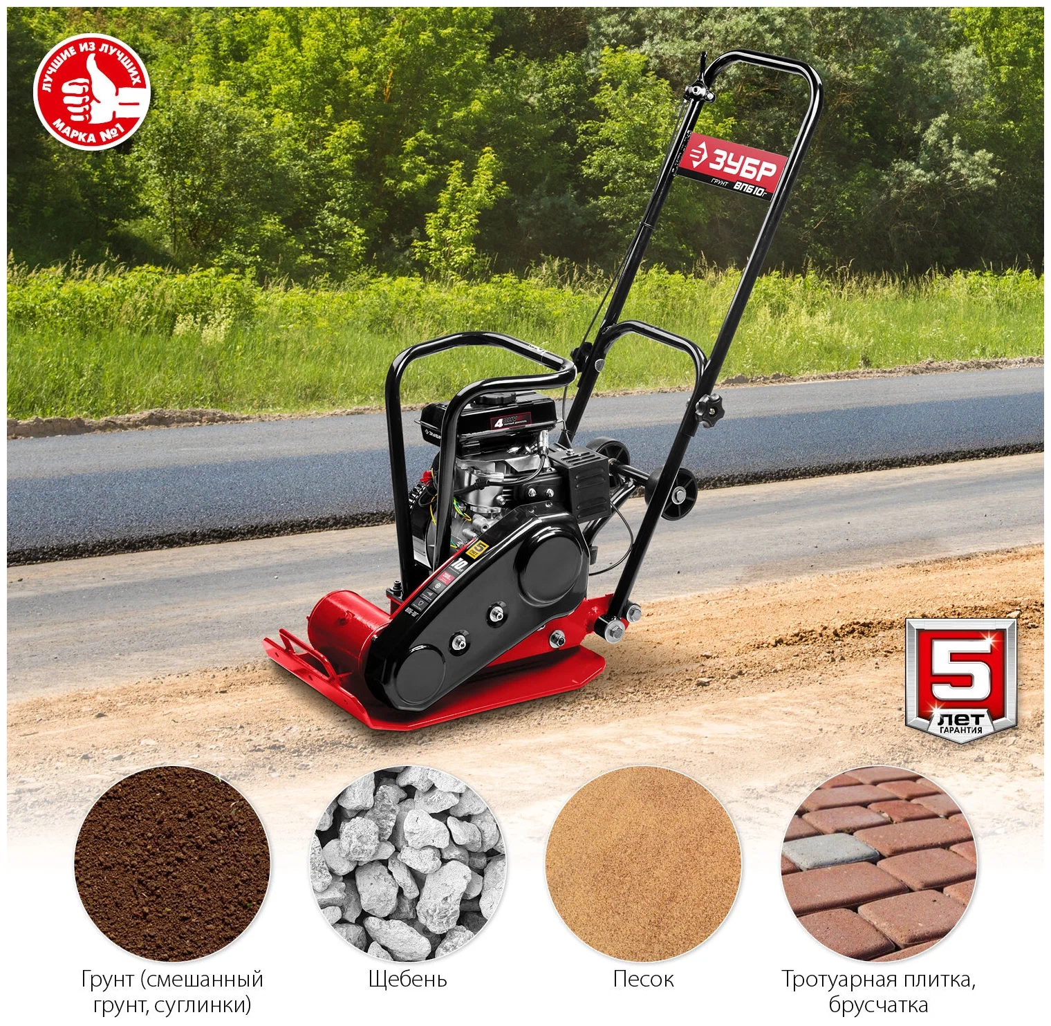 Оборудование подходит для высококачественного уплотнения таких материалов, как крупный и мелкий гравий, каменная брусчатка, песок, смесь битума с гравием.